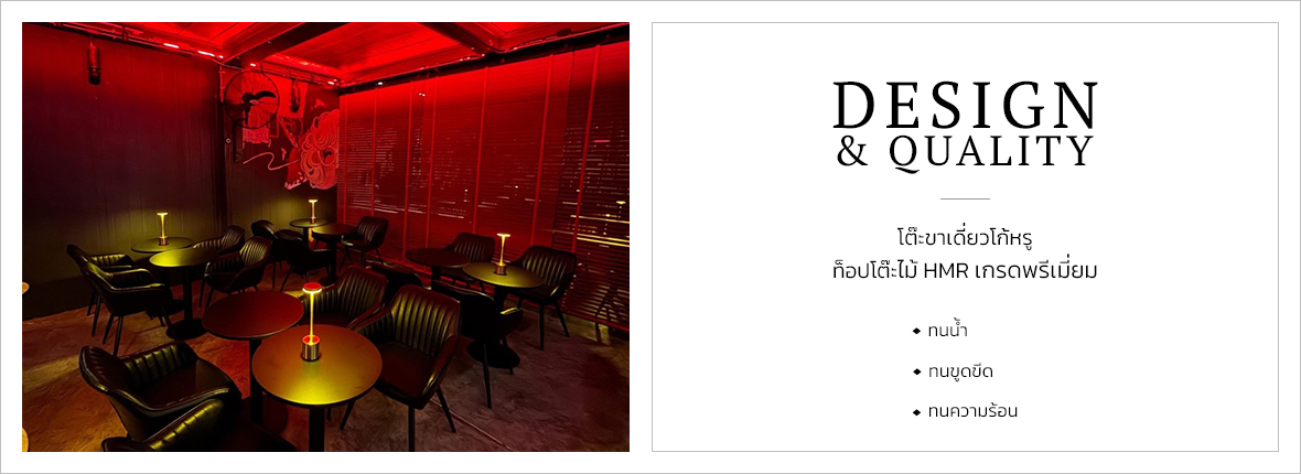 โต๊ะท็อปไม้ HMR ทนน้ำ ทนความร้อน ขา: ขาเหล็ก ใต้ฐานมีปุ่มปรับระดับช่วยในกรณีพื้นไม่เรียบ