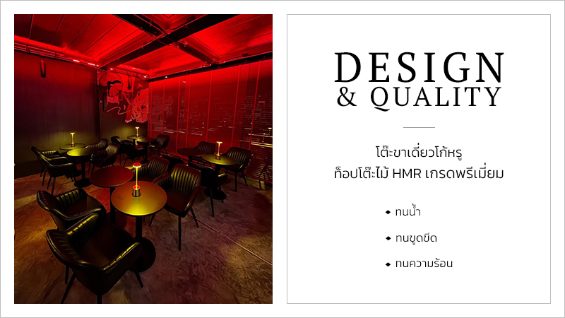 โต๊ะท็อปไม้ HMR ทนน้ำ ทนความร้อน ขา: ขาเหล็ก ใต้ฐานมีปุ่มปรับระดับช่วยในกรณีพื้นไม่เรียบ